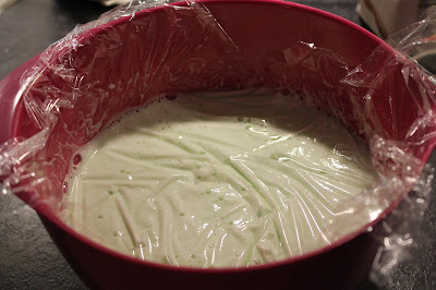 Pisk cremen med mascarponen og vend den piske fløde i cremen. Placer cremen oven chokoladen. Pynt med jordbær og mynte blade. Man kan komme lidt jordbærsirup eller hyldeblomstsirup oven på jordbærene. Har jeg dog ikke gjort her.